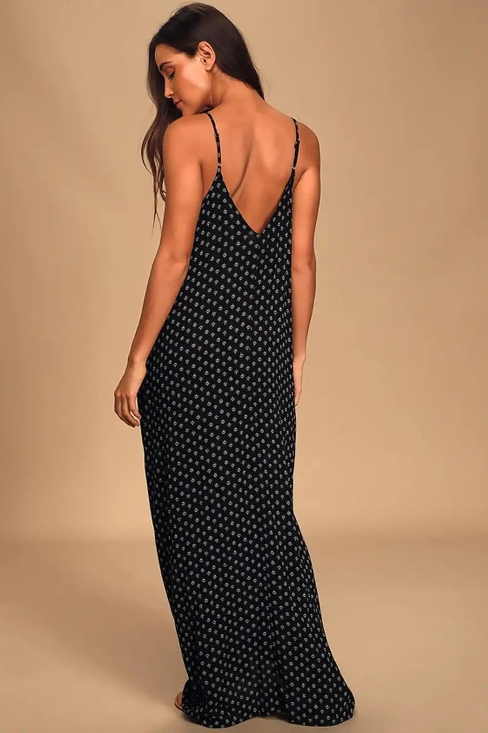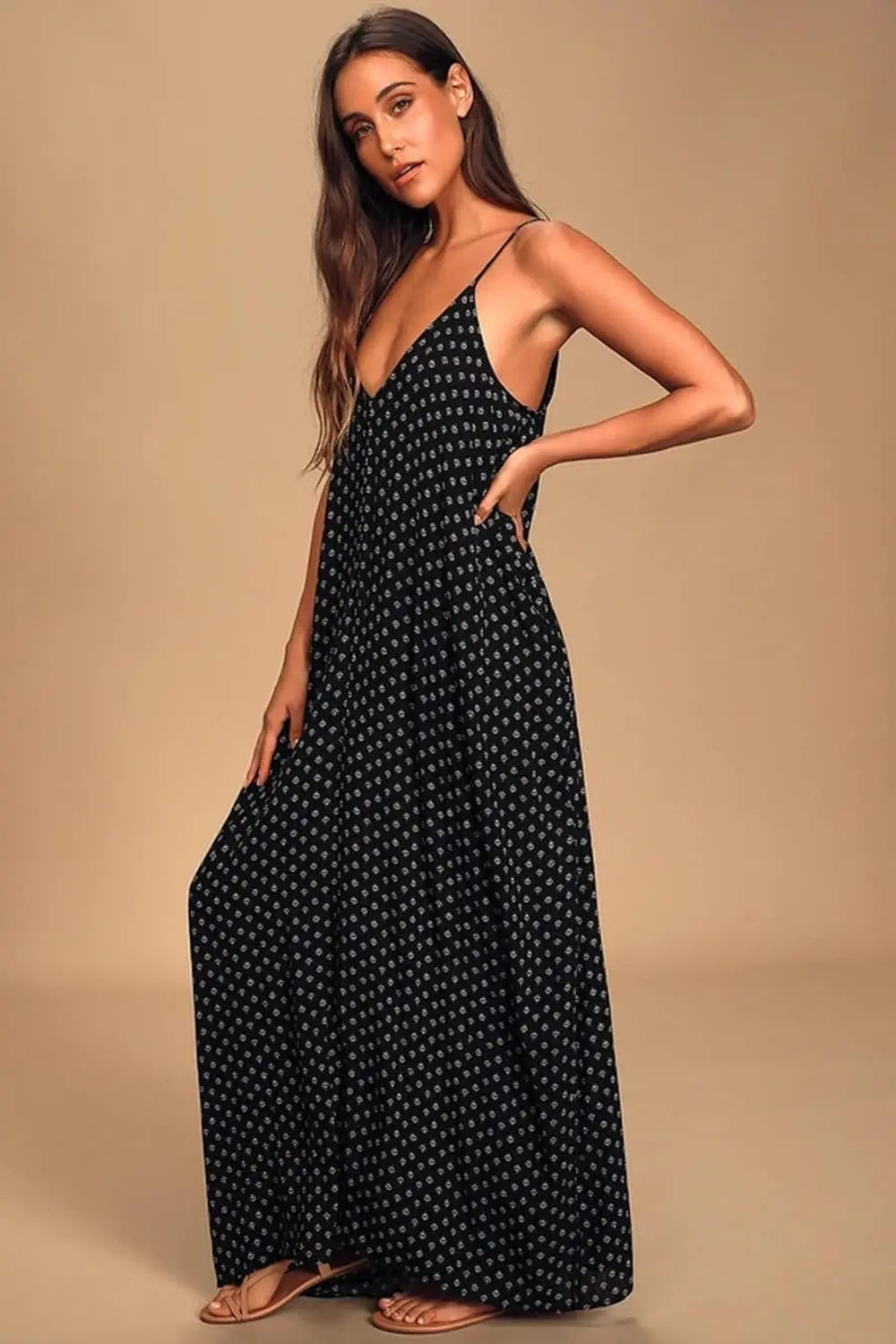 Women's Summer Casual Strappy V Neck Sleeveless Maxi Dress Loose Flowy Beach Sundress Dot Natural Plain Dyed Pockets Woven Weave